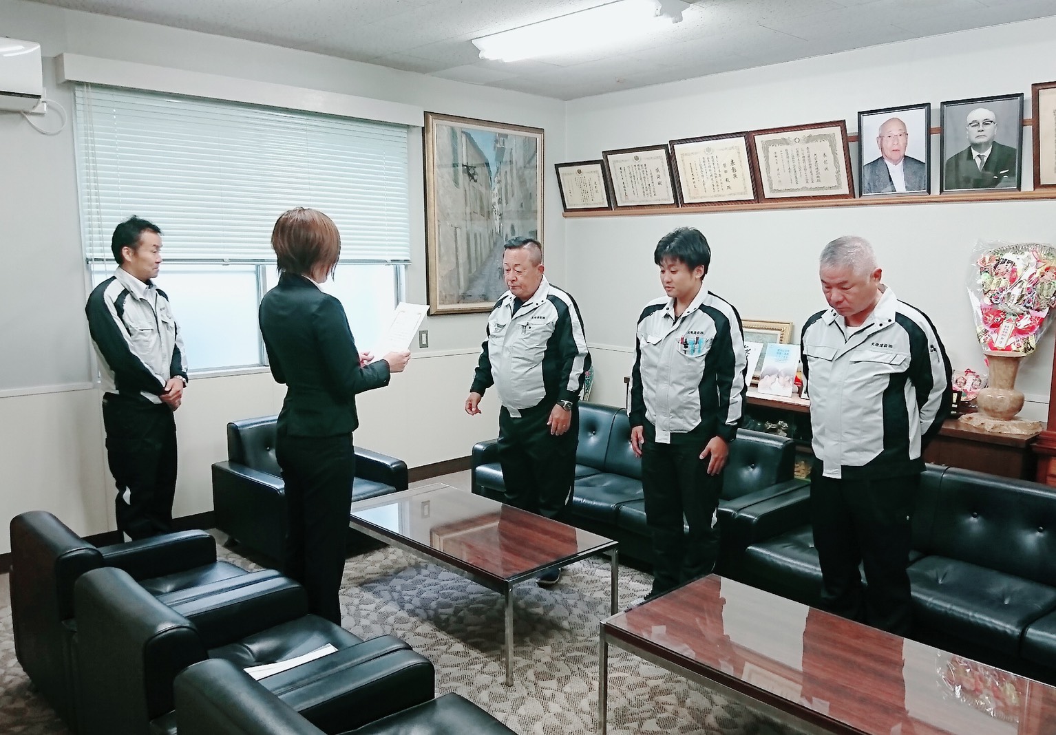 出発日である本日10月29日、会社にて出陣式を執り行いました。