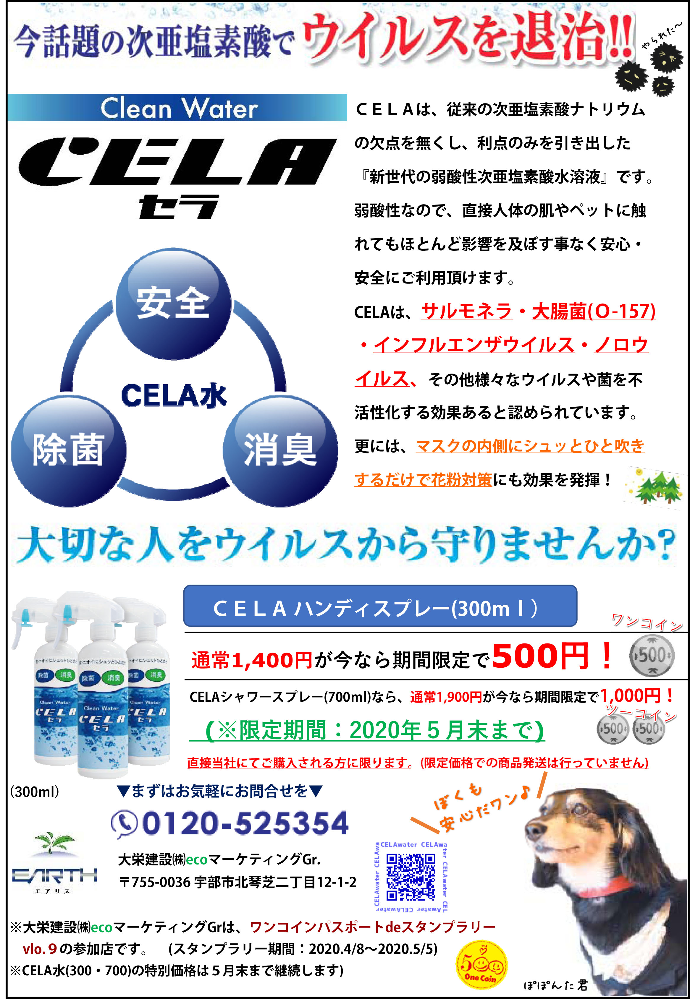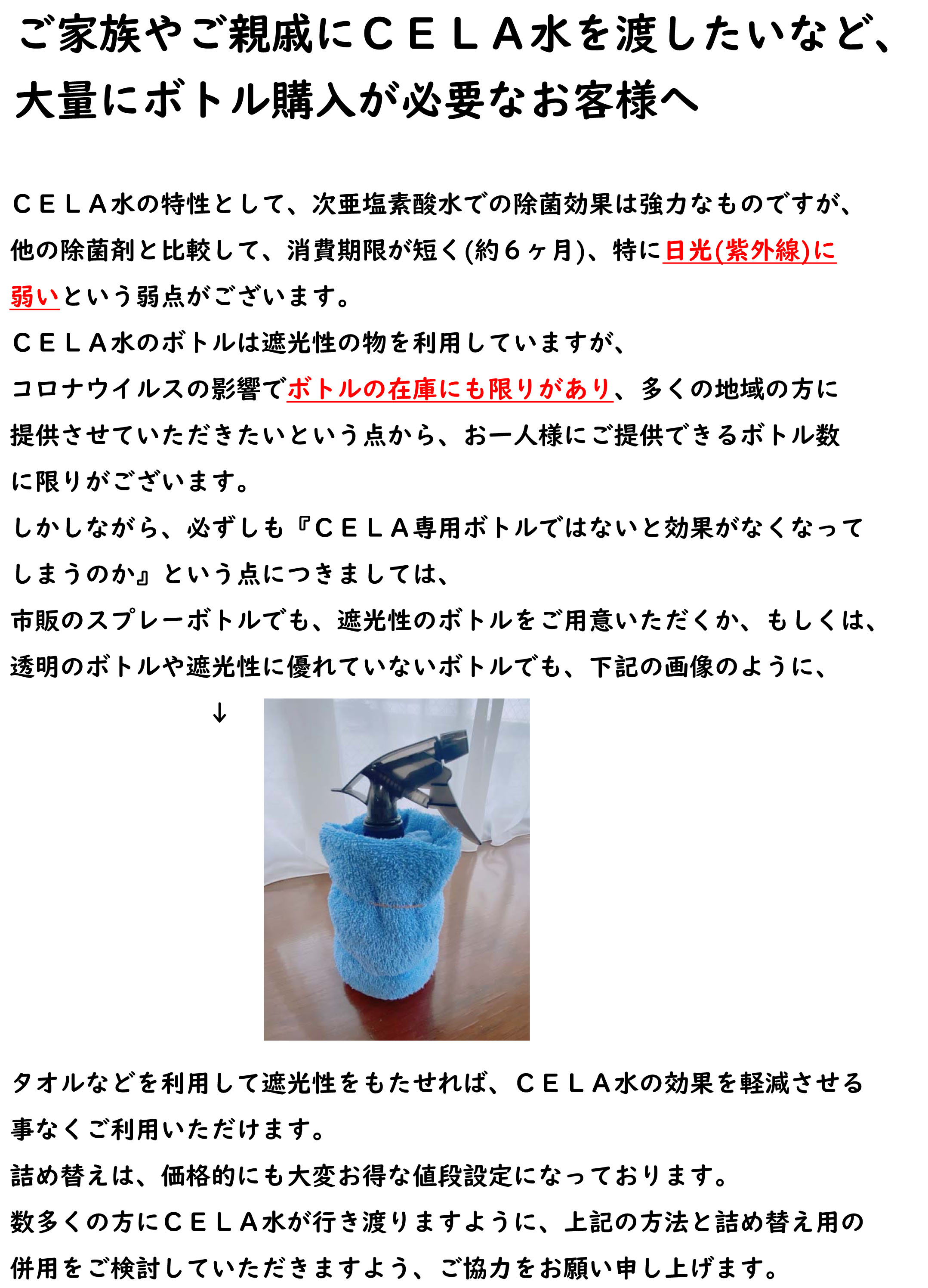 (追加データ・記事あり 2/28更新) 今話題の 次亜塩素酸でウイルスを退治! 除菌 消臭スプレーCELA水