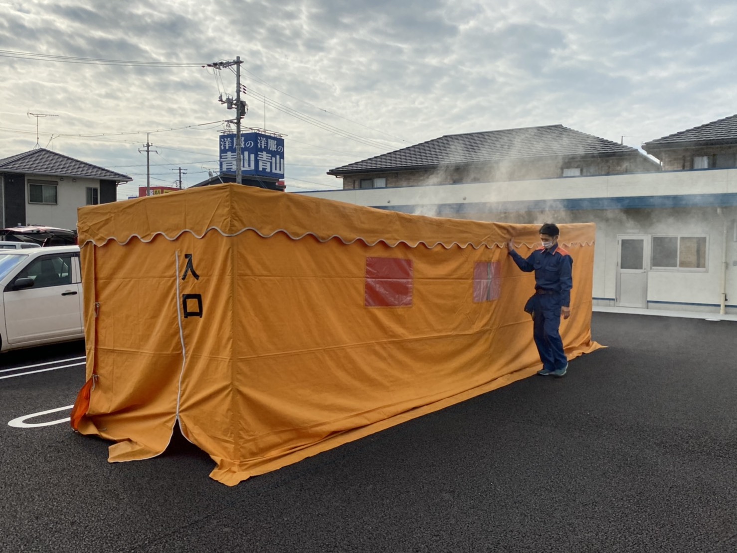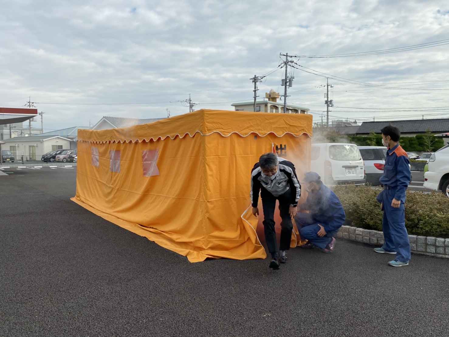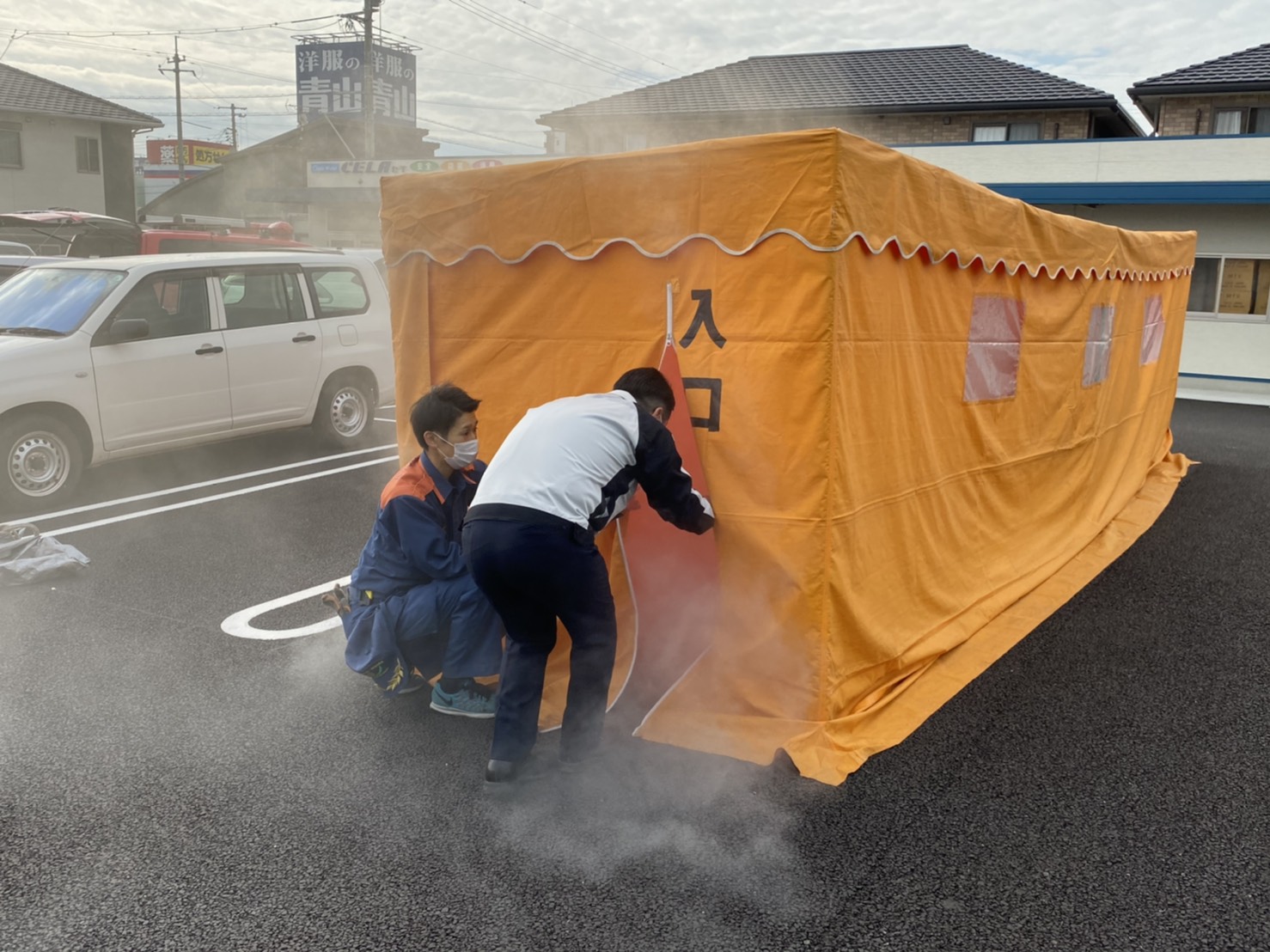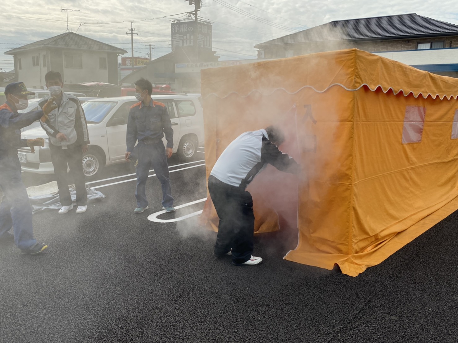 これは、火事発生で煙もくもく状態の室内疑似体験ができるテントなんです。