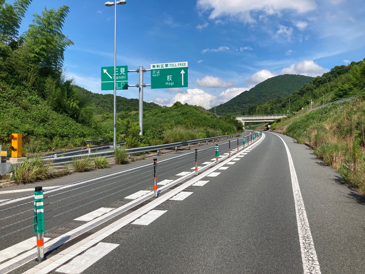 萩・三隅道路防護柵設置外工事が完成しました。