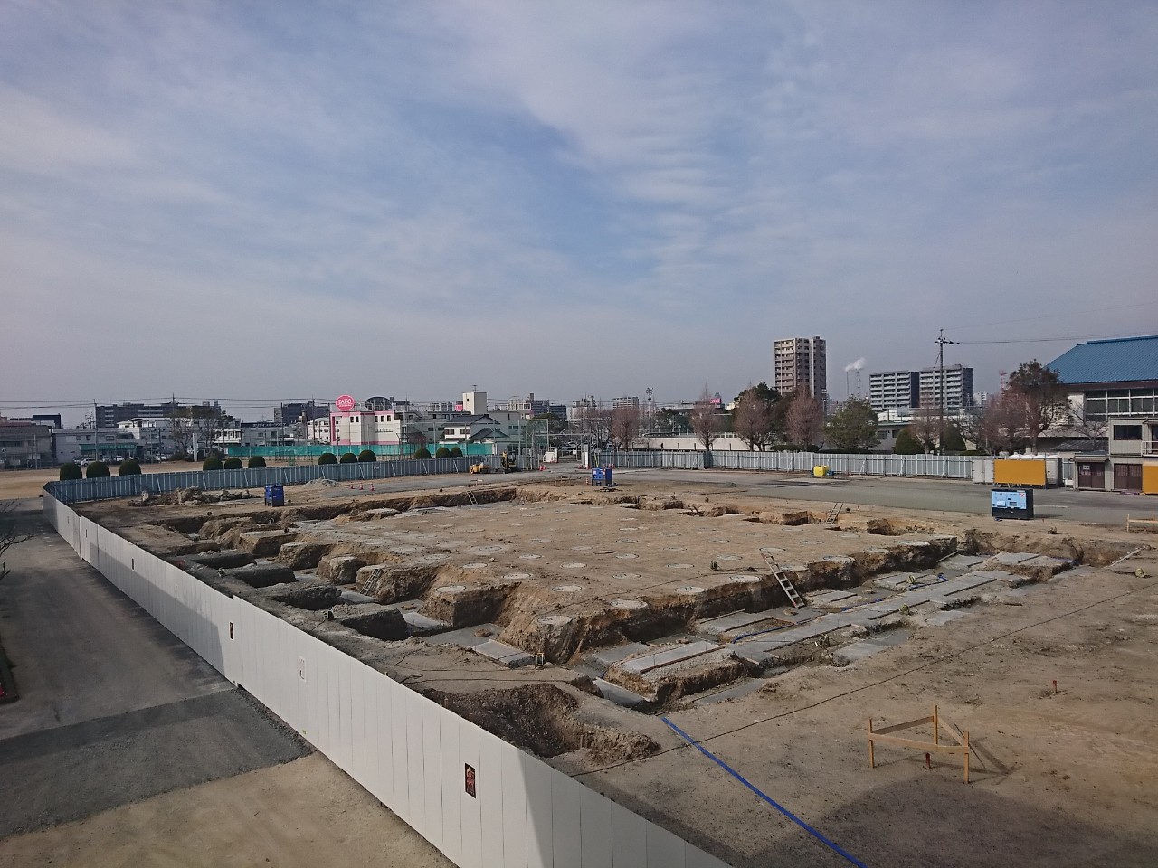 神原中学校屋内運動場改築(特殊基礎)工事が完成しました。