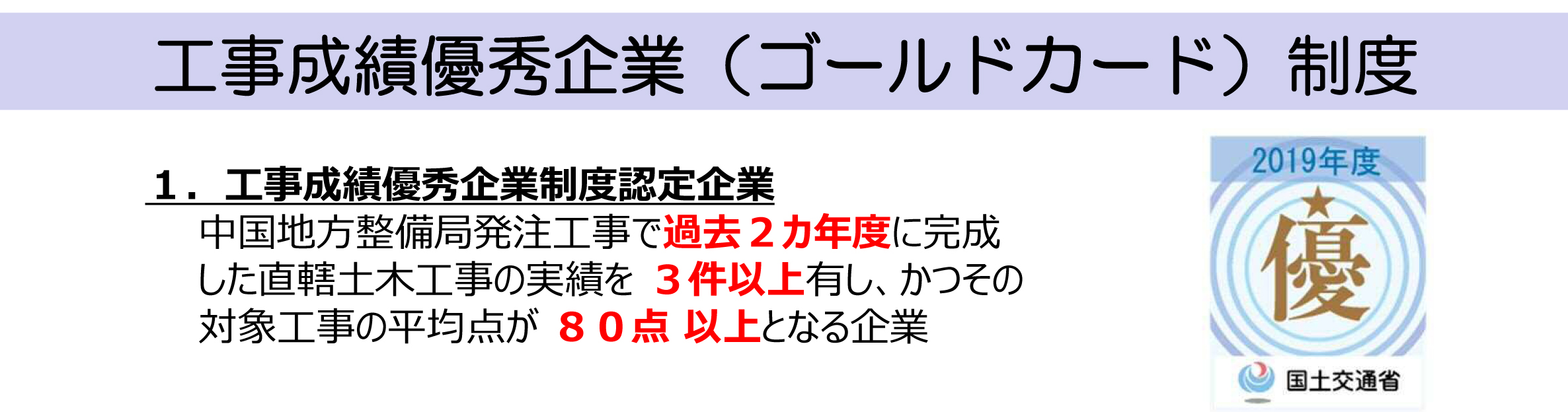 この度、国土交通省中国地方整備局より『令和3年度 工事成績優秀企業』に認定されました。