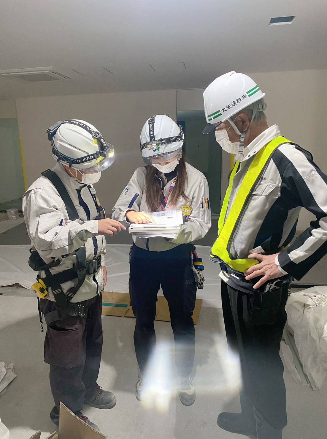新田さんを優しく指導してくれる大栄建設現場監督片山さん、