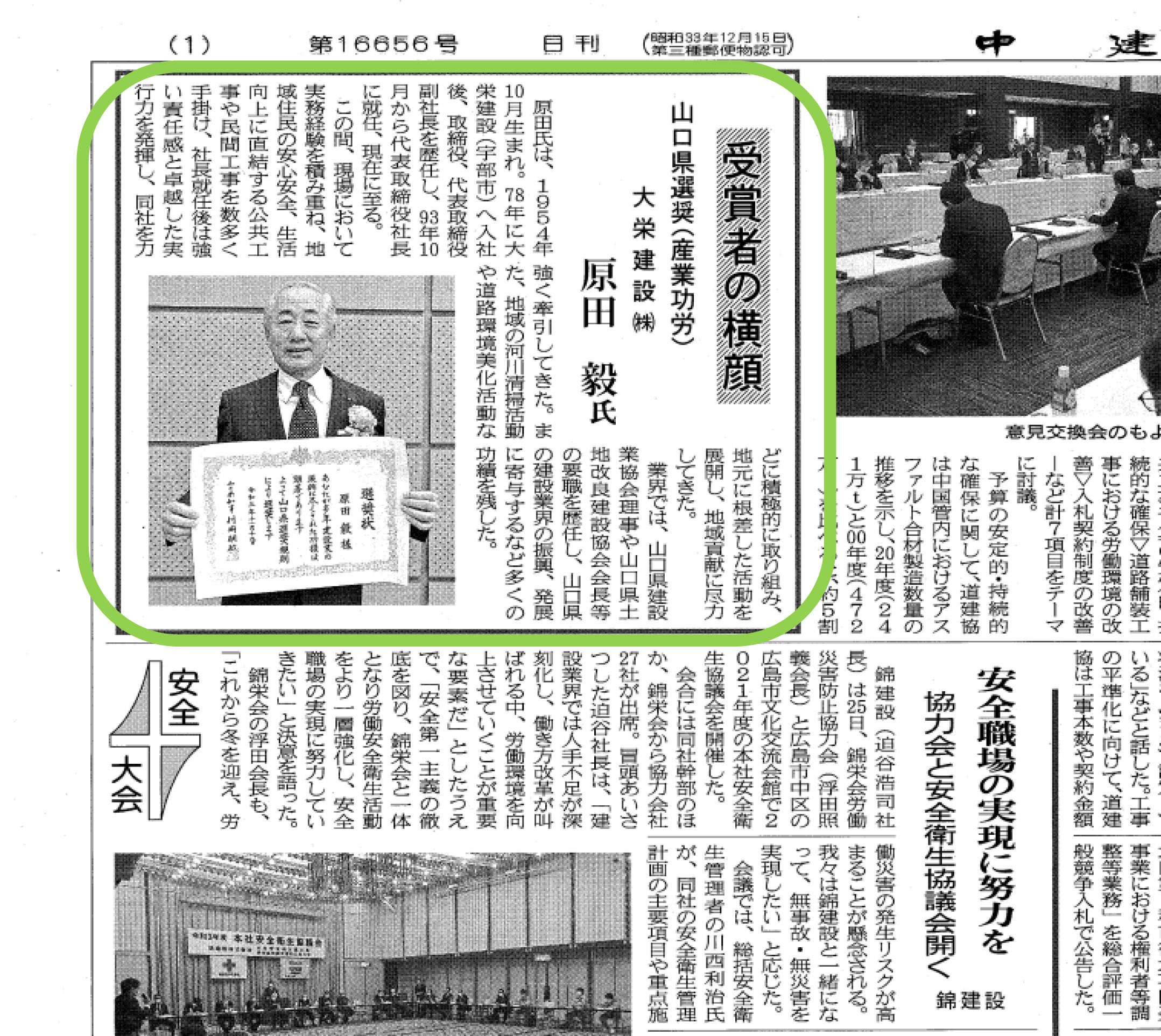 前回、取締役社長 原田毅が『2021年山口県選奨』を受賞した旨をHPのニュース記事としてご紹介させてもらいましたが、