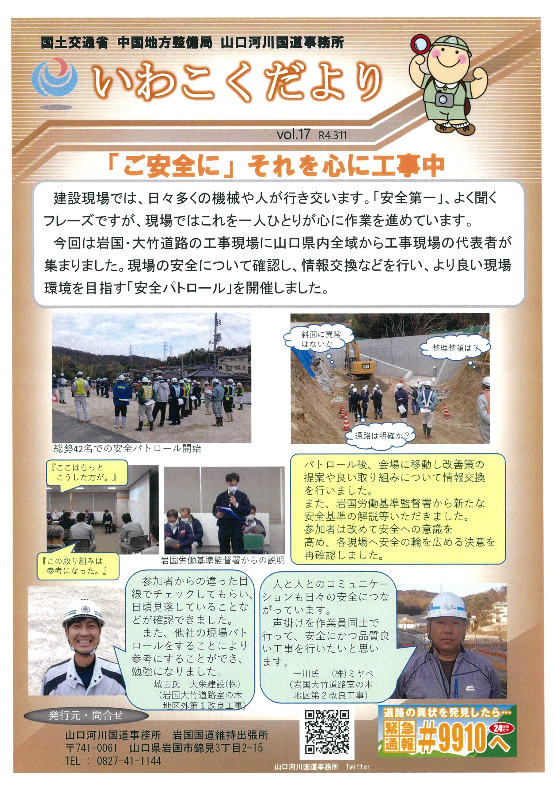 二人目は岩国市で岩国大竹道路の工事を担当している城田さんです。 こちらは、岩国国道維持出張所の『いわこくだより』に掲載されています。