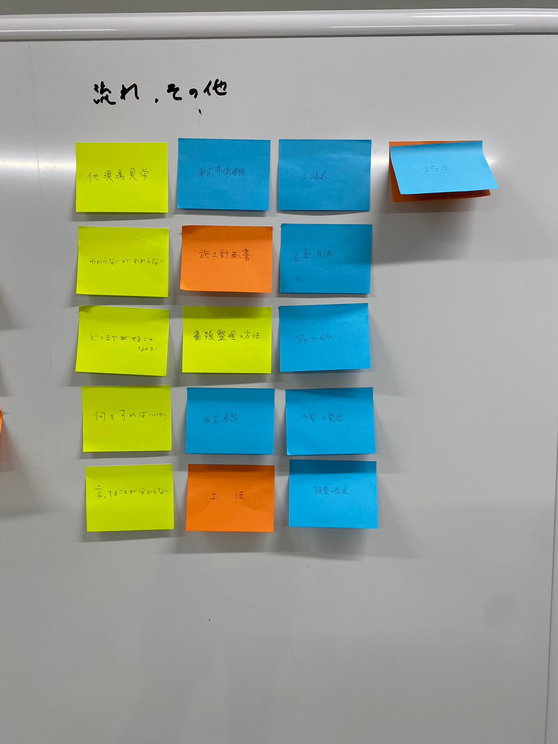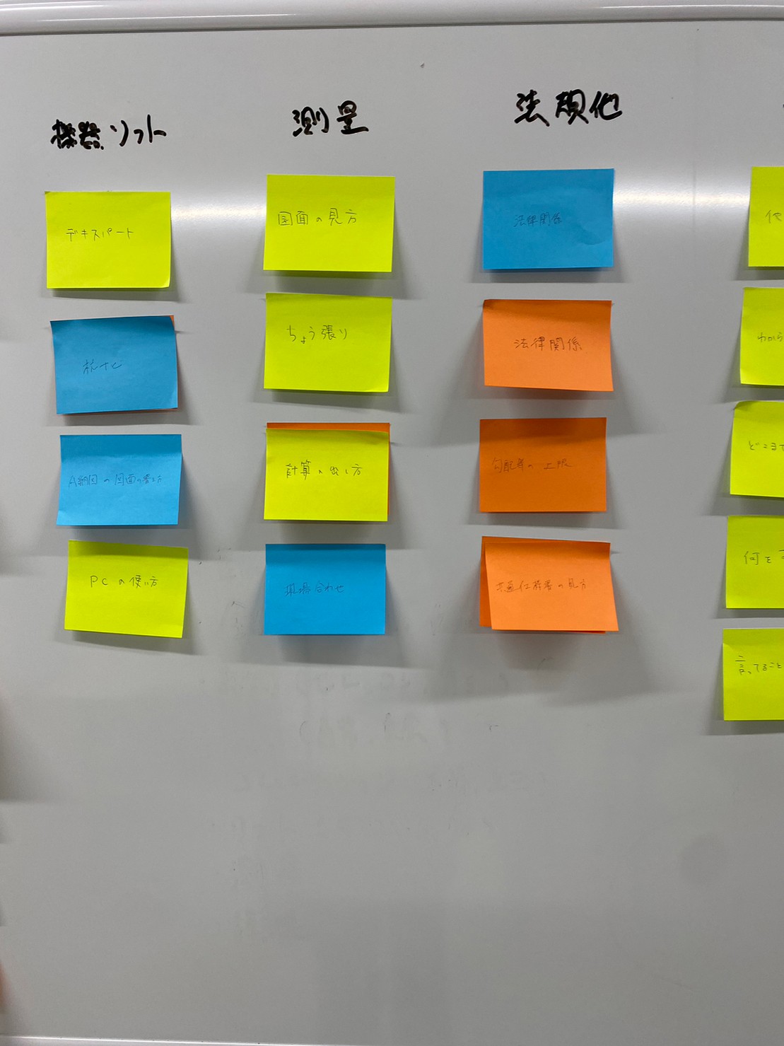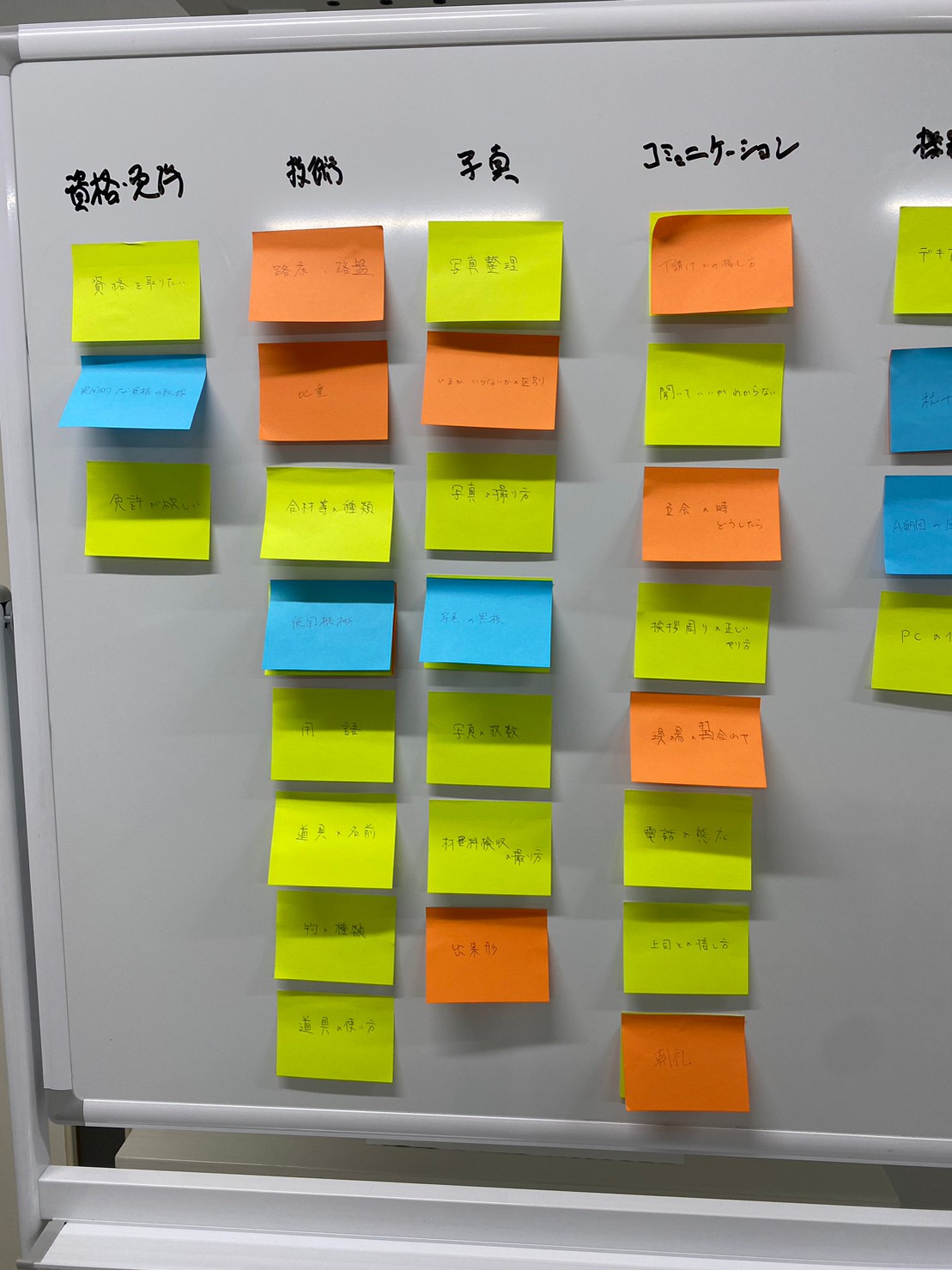 その後、内容をざっくりと種類別に分けてホワイトボードにペタペタと貼っていき、