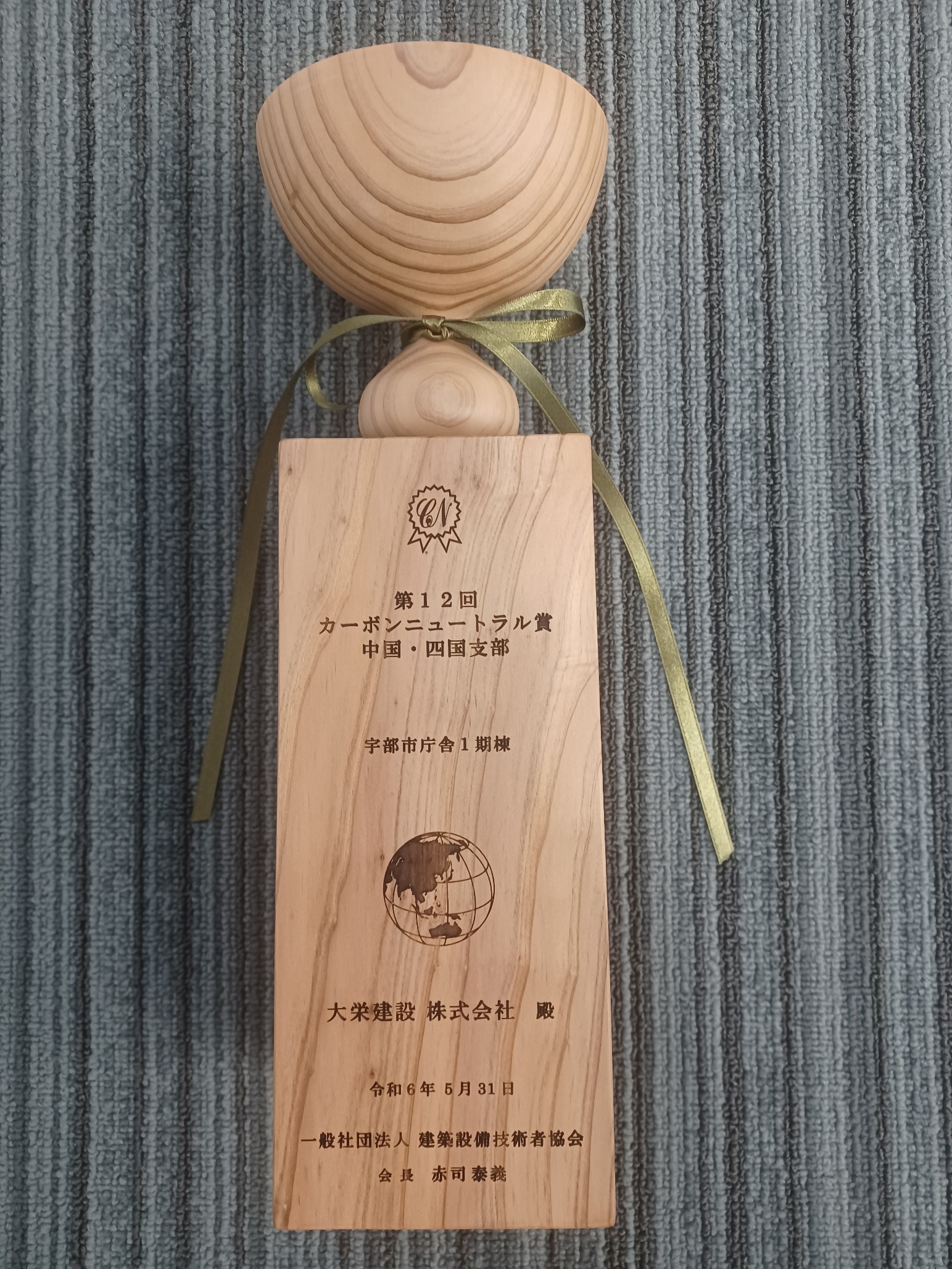 この度、大成建設・宇部工業・大栄建設共同企業体が施工した『宇部市庁舎1期棟』が一般社団法人 建築設備技術者協会より山口県で初となる『第12回カーボンニュートラル賞 中国・四国支部』を受賞しました。