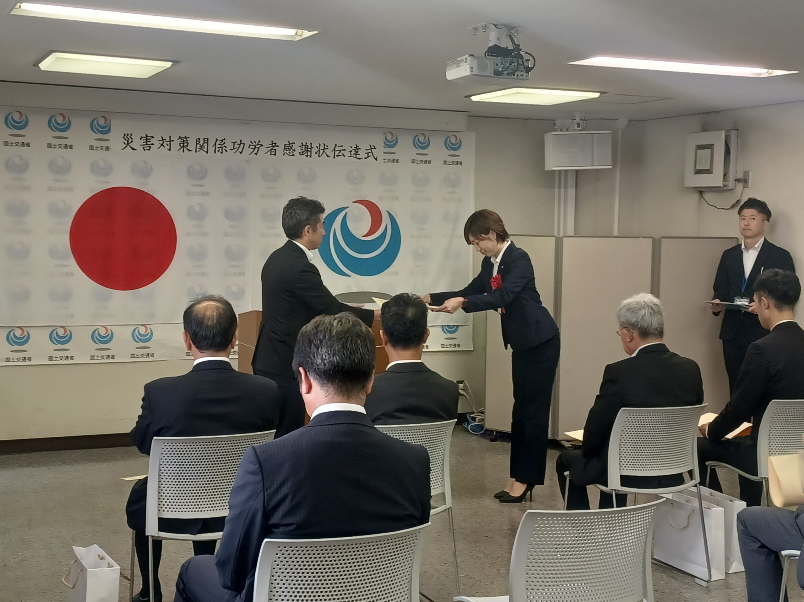 この度、国土交通省中国地方整備局より感謝状【災害対策関係功労者表彰】をいただきました。