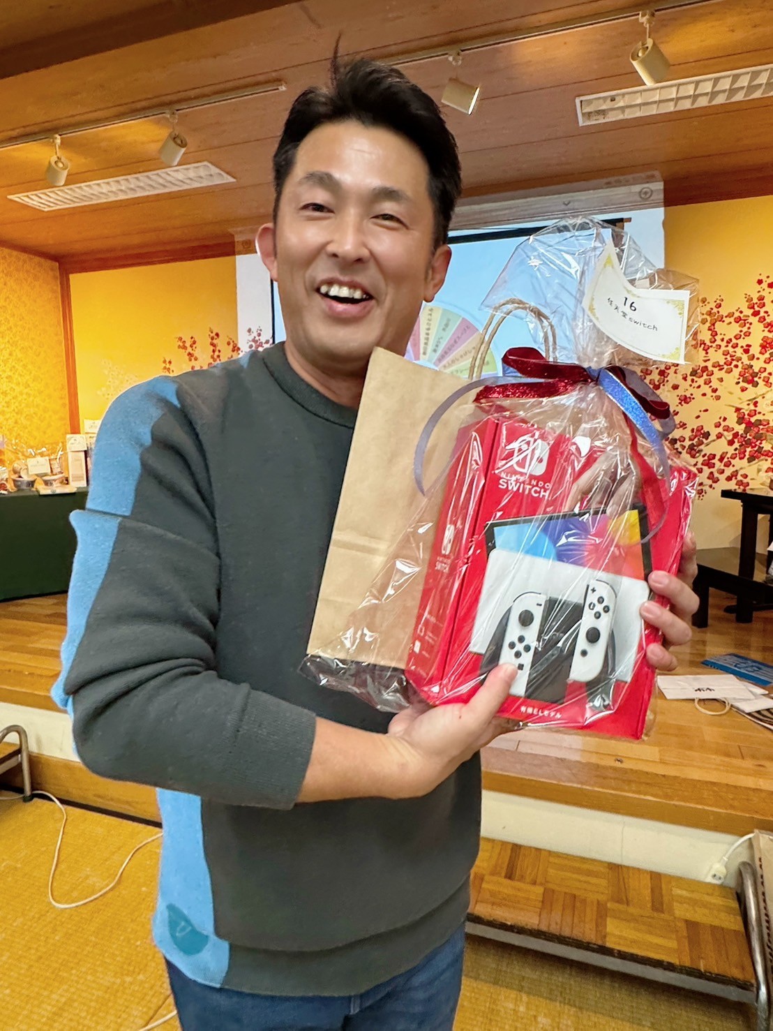 去年のビンゴの目玉商品はなんと、みんなが欲しいのか分からないけども【任天堂switch】でした~ (しかもマリオカラー)