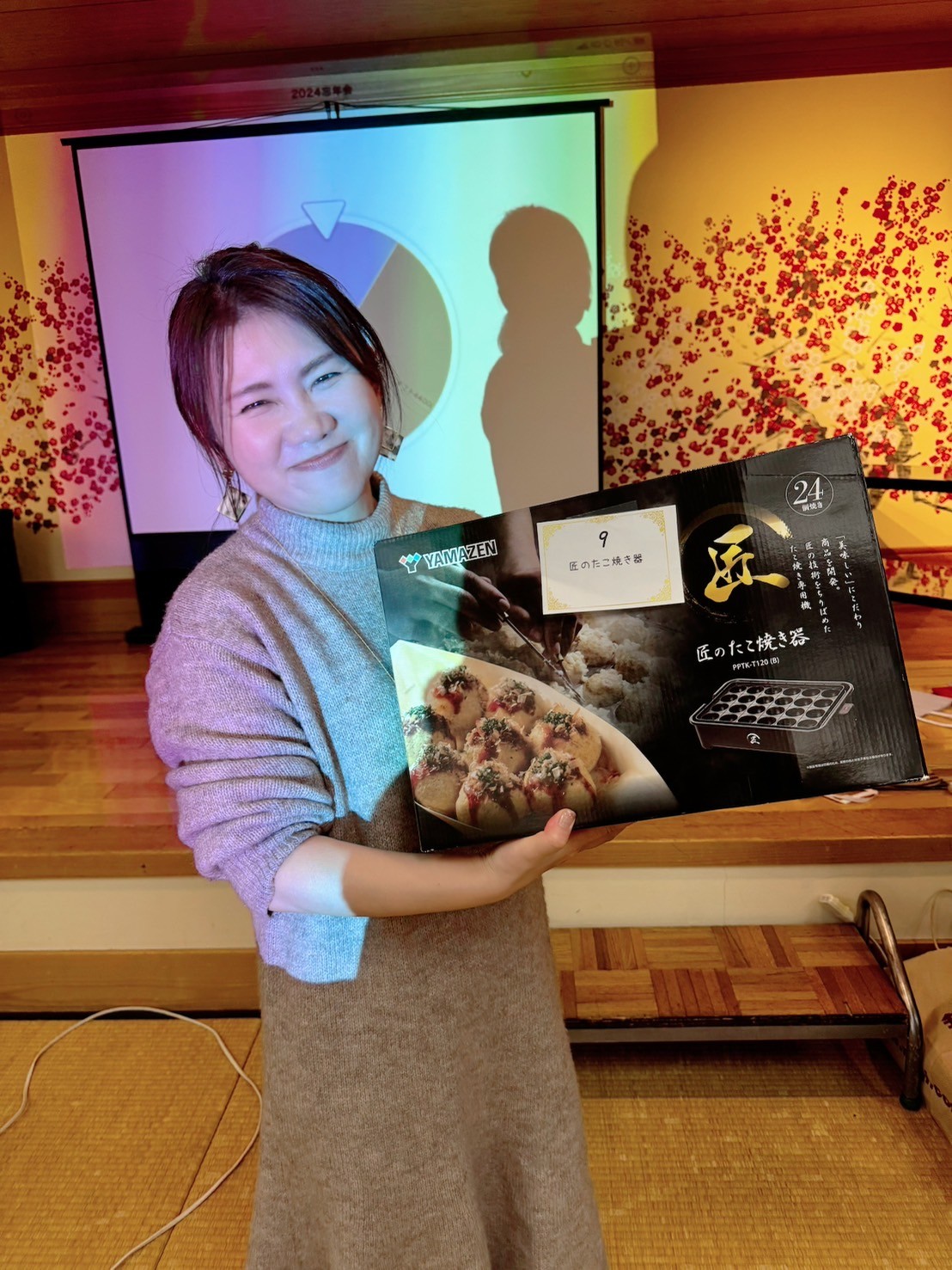 そして賞品渡し担当はかわいい新田ちゃんの大栄建設94期世代で新しい忘年会のスタートです^^