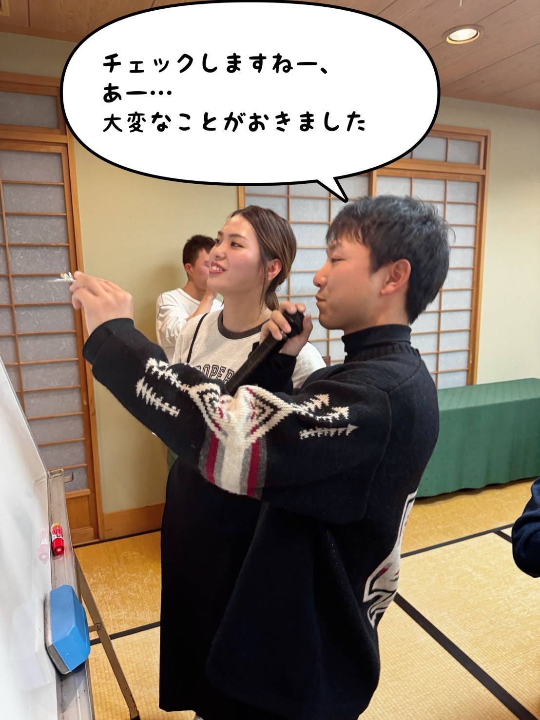 ということで、今年は、ビンゴの司会担当は大塚くん、数字引きと発表、ホワイトボード書き込み担当を近藤くん、