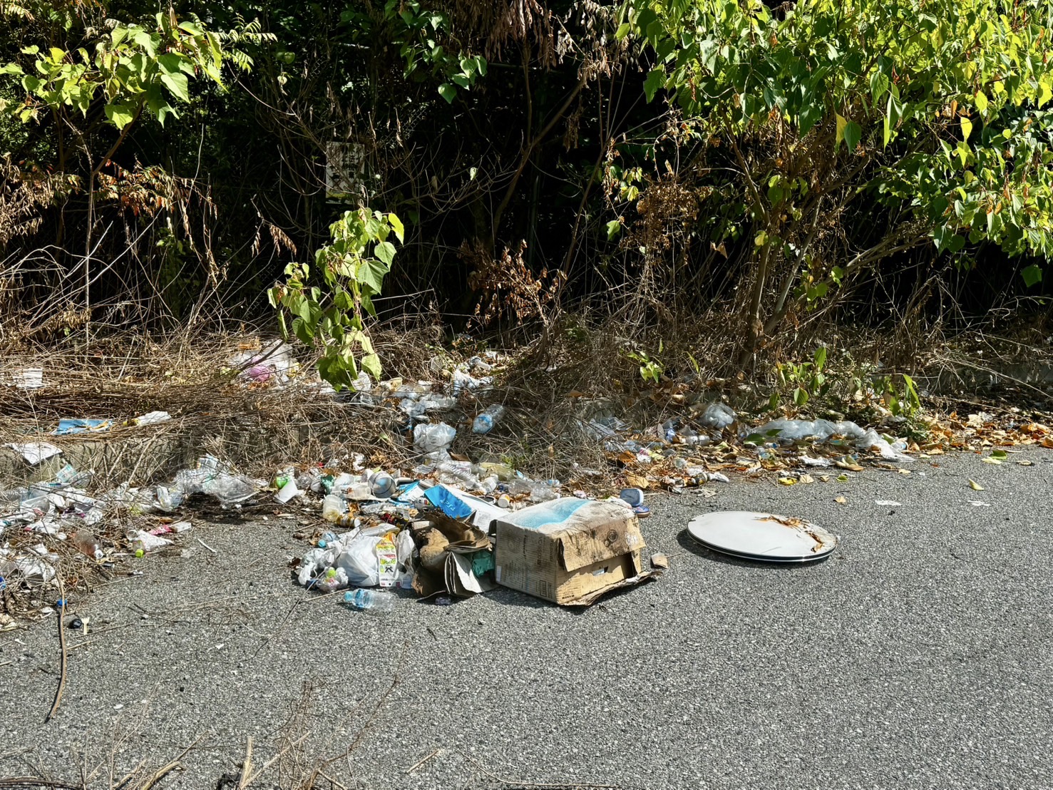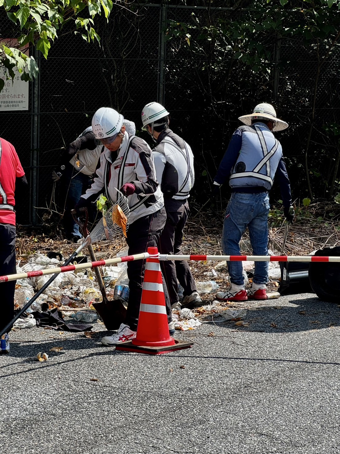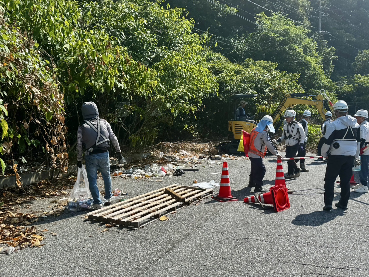 この日の作業は、道路脇のパーキングエリアに不法投棄されたごみの清掃活動です。