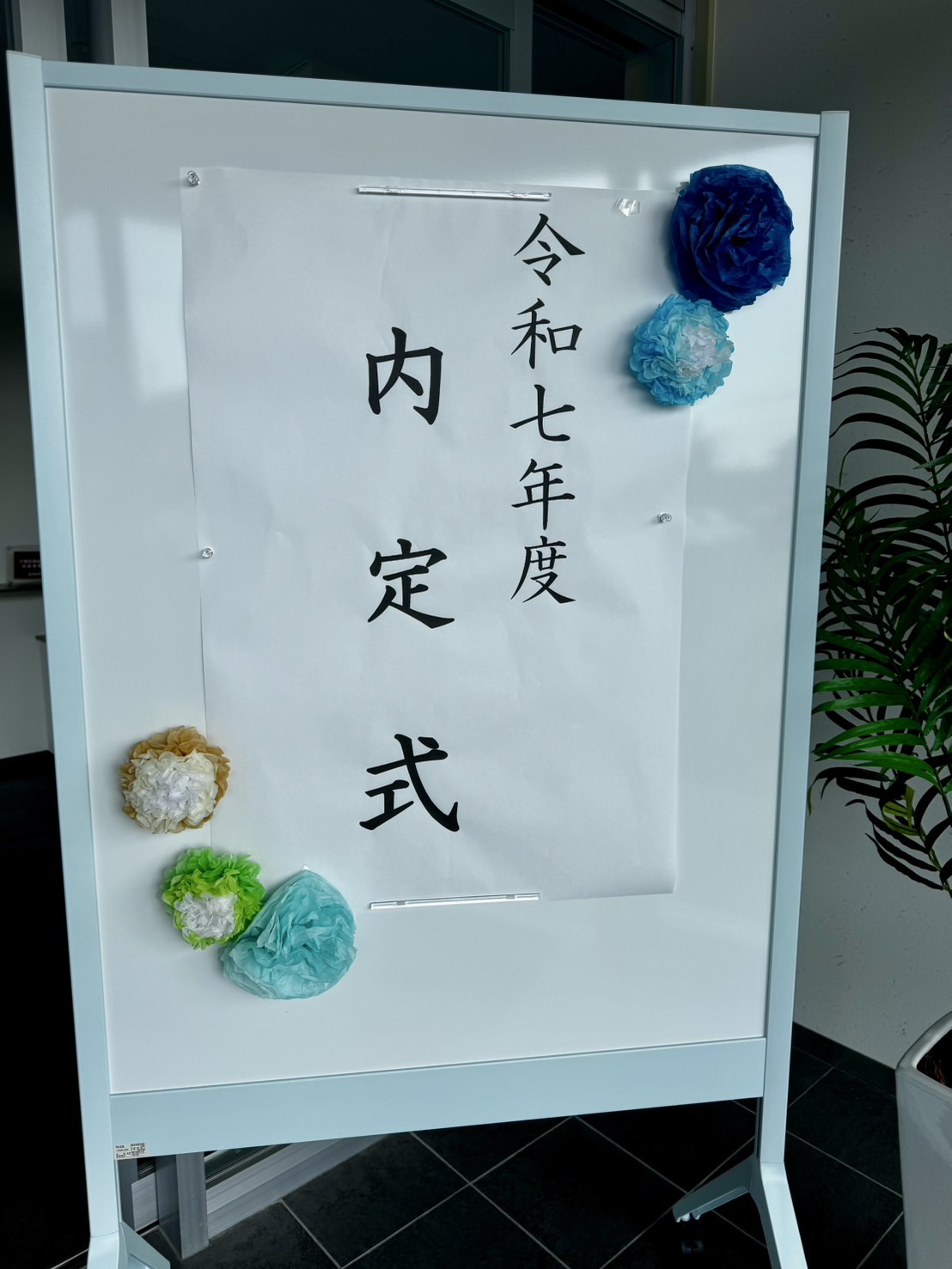 今年は、土木工務部に配属予定である2名の学生をお迎えし、ささやかながら心温まる式となりました。